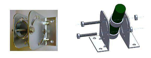 根據(jù)上圖可知,拓天電子圍欄受力柱底座有左右倆個(gè)底座構(gòu)成,采用80膨脹螺絲4孔固定,且角度可以萬向無極調(diào)角度(可選擇90度直立安裝也可以選擇如圖的傾斜安裝),中間添加圓形抱箍墊圈,外部添加螺帽和墊片,保證了圍欄的整體強(qiáng)度。另外底座的整個(gè)厚度達(dá)到3毫米以上且是熱鍍鋅不上繡,使用壽命最低可達(dá)到5年以上。