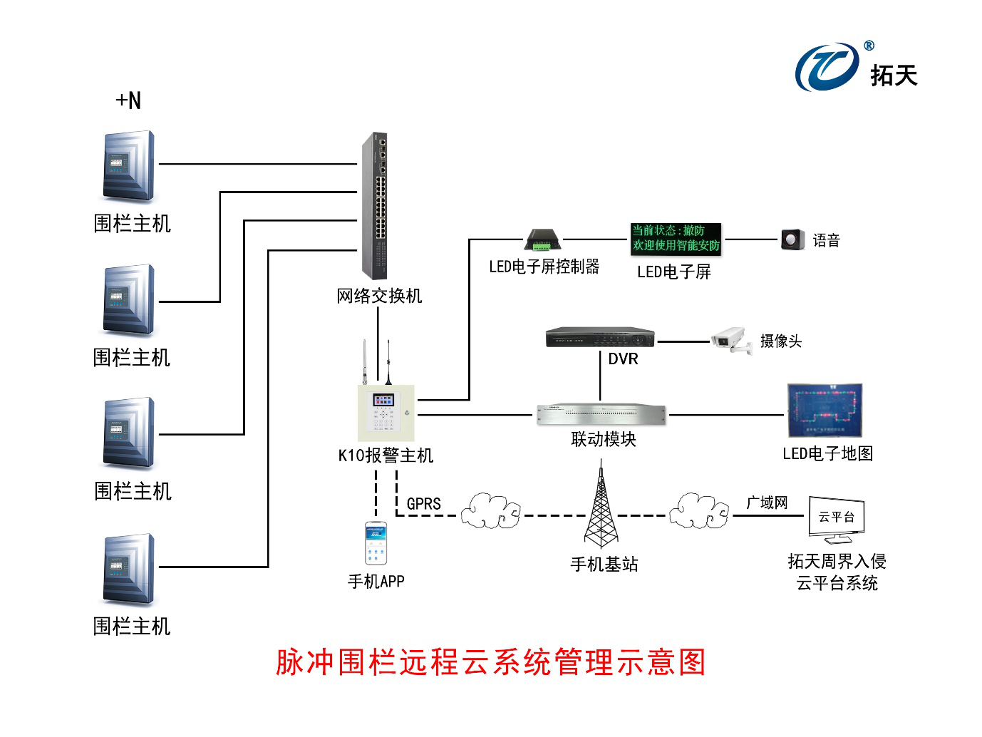 全面支持接入脈沖電子圍欄、張力電子圍欄、泄漏電纜、振動光纖、地址碼等周界報警設(shè)備,并實(shí)現(xiàn)集中統(tǒng)一管理。云平臺軟件可以連入多達(dá)幾百個GPRS報警主機(jī)