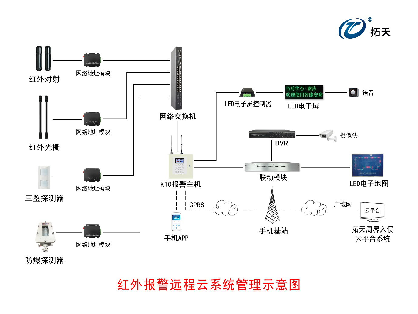 可與周界報警設(shè)備 GPRS報警主機(jī)通過手機(jī)卡連廣域網(wǎng)云服務(wù)器