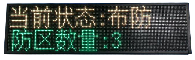 功能描述:1.LED電子屏 F3.75 雙色顯示,豪華大氣,直觀,適合所有場所。2.兩行字體顯示,可以顯示在線防區(qū)數(shù)量,公司LOGO 當(dāng)前狀態(tài),報警防區(qū)3.安裝方式:掛裝......