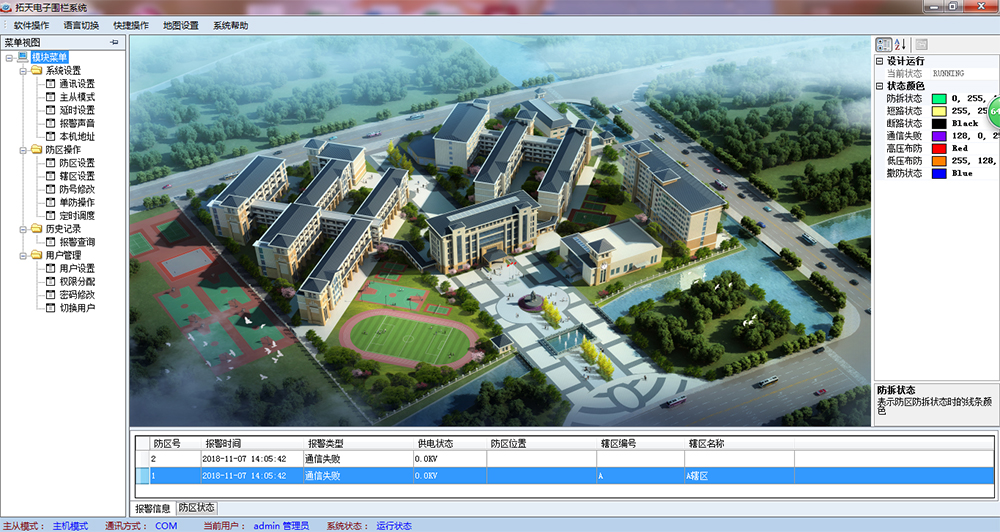 電子地圖:可對BMP格式的圖片進(jìn)行防區(qū)定義,可以區(qū)分不同報(bào)警的顏色設(shè)置,報(bào)警時(shí)定義的防區(qū)閃爍。直觀,方便!