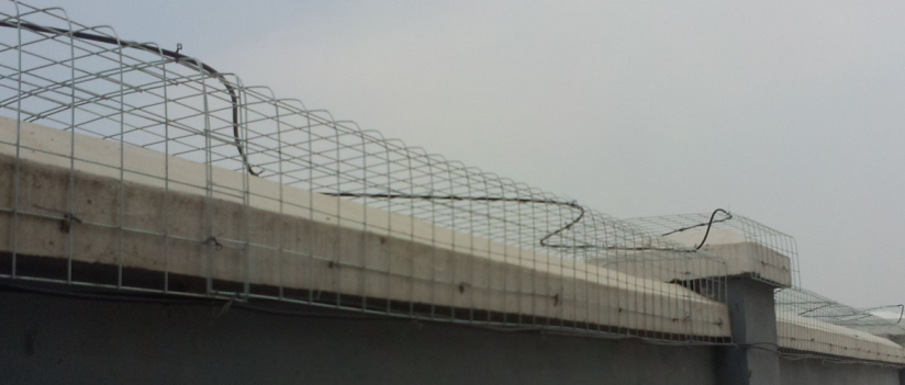 2.3 在裝有滾刺籠的墻頂上加裝振動(dòng)傳感光纜的施工方式。起到物防加技防的雙重作用。常見的是在機(jī)場、國防防護(hù)這類場合的周界應(yīng)用。